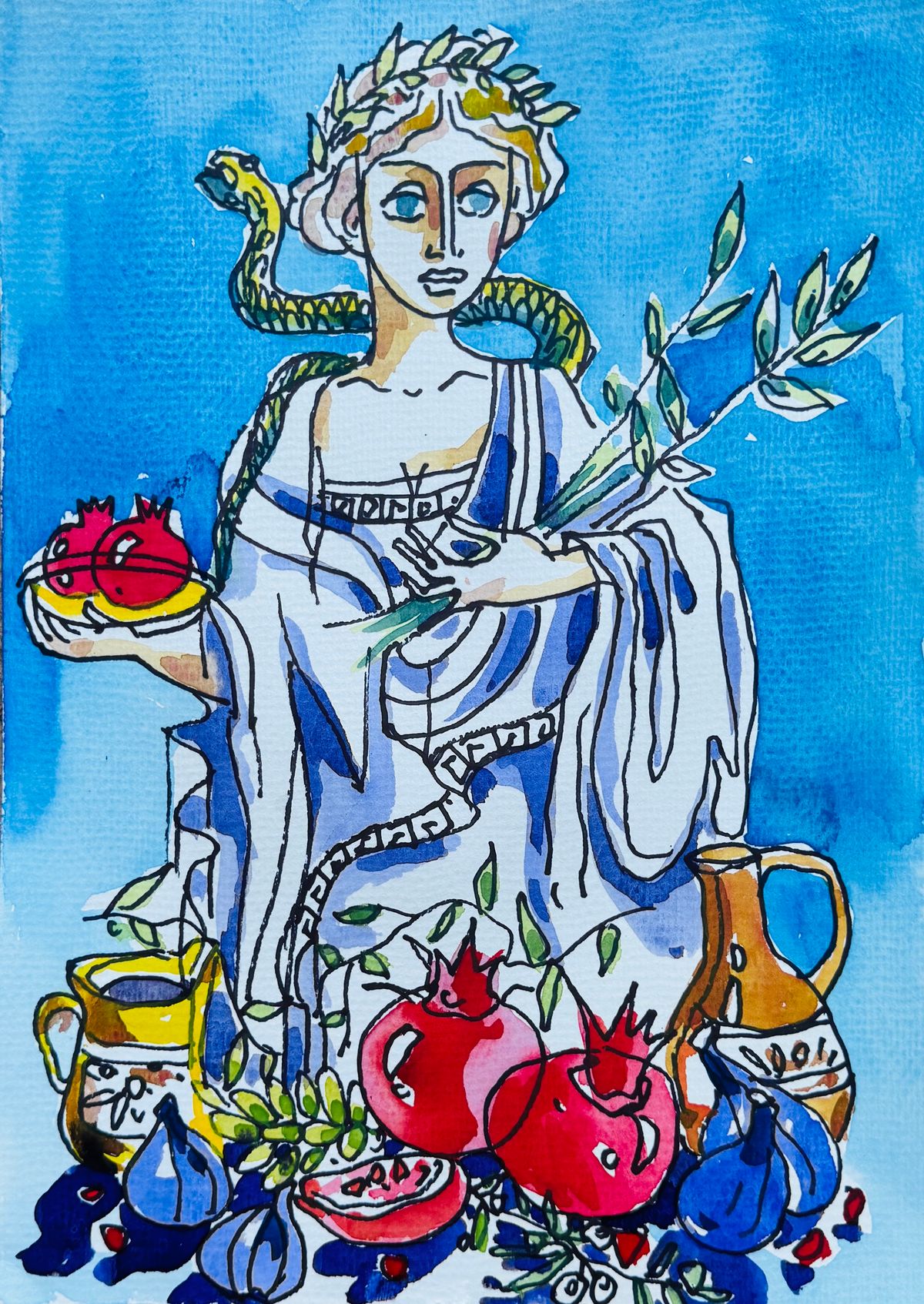Каждый месяц посвящён одной греческой богине или музе: с мифом, цветом, камнем и взглядом, который можно проживать весь месяц.